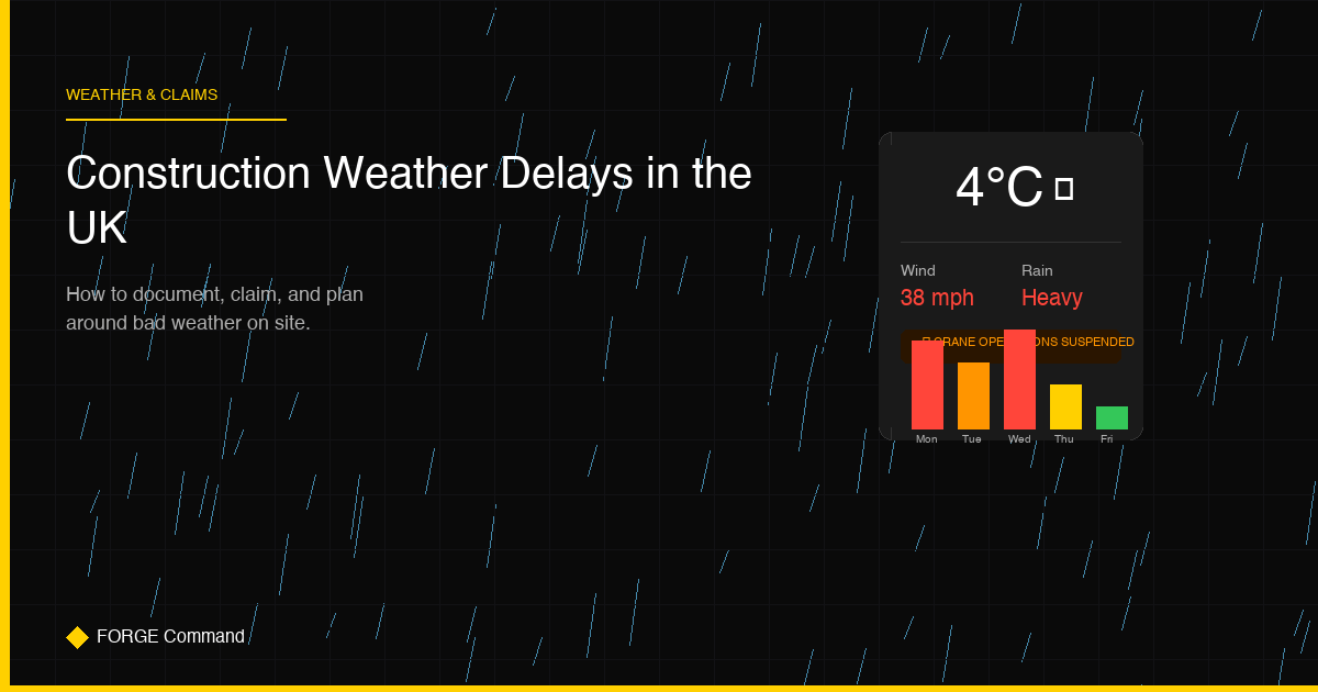 UK weather causes millions in construction delays every year. Learn how to properly document weather disruption, make successful delay claims, and use forecasting to protect your programme.